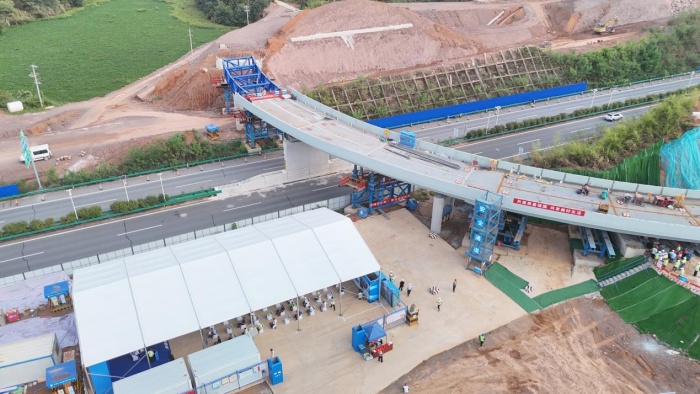 9月4日,通城至修水高速公路(湖北段)崇陽西互通C匝道橋跨既有高速小半徑鋼箱梁差速頂推觀摩會成功舉行。來自湖北省交通運(yùn)輸廳工程事務(wù)中心、咸寧市交通運(yùn)輸局、武漢城發(fā)集團(tuán)、武漢交投集團(tuán)及相關(guān)建設(shè)、設(shè)計(jì)、監(jiān)理、施工單位等共百余人參加了此次觀摩交流活動(dòng),共同聚焦橋梁建設(shè)關(guān)鍵技術(shù),探索交通工程創(chuàng)新發(fā)展路徑。