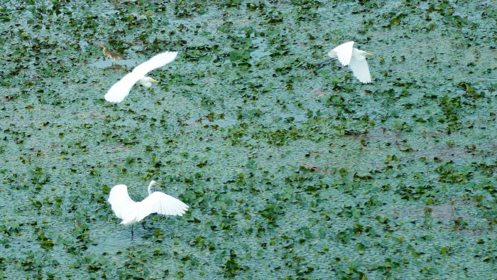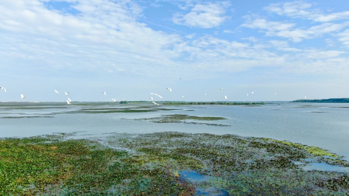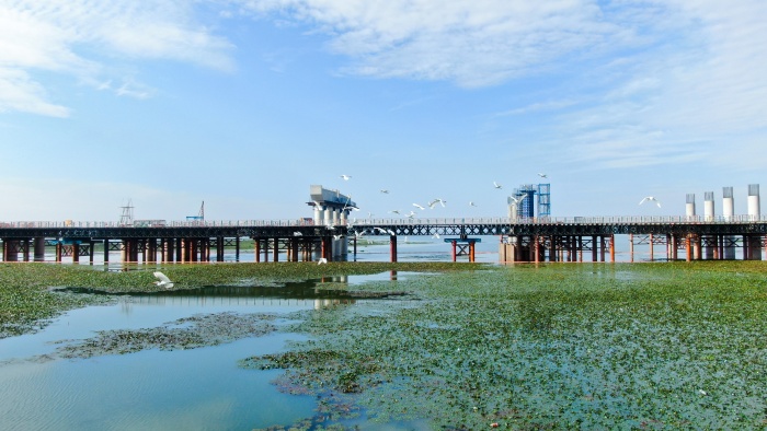 如今,當(dāng)全長8300余米的斧頭湖一號鋼棧橋如鋼鐵長龍橫臥水面,其映照的不僅是建設(shè)者的汗水,更是生態(tài)優(yōu)先的答卷。鋼棧橋及主體工程施工期間,斧頭湖作業(yè)區(qū)水質(zhì)監(jiān)測數(shù)據(jù)持續(xù)優(yōu)良,周邊濕地未受侵?jǐn)_。正是這份對自然的敬畏,引來了白鷺的棲息。它們掠過工地林立的樁基,停駐在防護(hù)網(wǎng)外的淺灘,儼然成為生態(tài)成效的“第三方認(rèn)證”——工業(yè)巨人以謙卑姿態(tài)與自然對話,終獲生靈信任。
