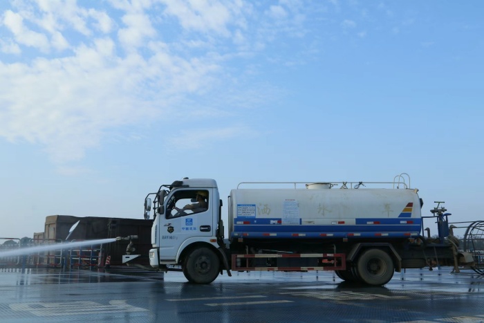 在揚(yáng)塵治理戰(zhàn)場,科技與匠心并重。土方開挖區(qū),霧炮車如游龍吞吐云霧,瞬間鎖住塵埃。渣土運(yùn)輸車輛“全副武裝”——密閉式貨箱、自動沖洗平臺、GPS軌跡追蹤,確保“上路不撒漏,出場不帶泥”。試驗(yàn)室;穼齑鎯Γ瑥U液收集瓶如列隊(duì)士兵,等待專業(yè)機(jī)構(gòu)“點(diǎn)對點(diǎn)”清運(yùn)。環(huán)保信用評價如懸頂之劍,倒逼每一個環(huán)節(jié)精益求精。